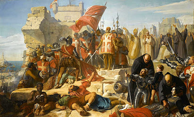 The painting shows the Lifting of the Siege of Malta, by Charles-Philippe Lariviere. Salle des Croisades, Versailles.
